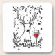 Ein lustiges und fröhliches Weihnachtskonzept zeigt eine Kontur eines Hirsches, umgeben von Schneeflocken und Farnbranchen. Neben den Zweigen sitzt ein Glas Rotwein. Der handgeschriebene Text lautet: "Tipsy und hell." Dieses Design wird auf einer Vielzahl von Produkten präsentiert und ist somit ein perfektes Geschenk für Weinliebhaber.