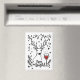 Ein lustiges und fröhliches Weihnachtskonzept zeigt eine Kontur eines Hirsches, umgeben von Schneeflocken und Farnbranchen. Neben den Zweigen sitzt ein Glas Rotwein. Der handgeschriebene Text lautet: "Tipsy und hell." Dieses Design wird auf einer Vielzahl von Produkten präsentiert und ist somit ein perfektes Geschenk für Weinliebhaber.