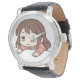 Uhr, Klassische Damenuhr mit schwarzen Lederarmband