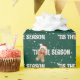 White 'TIS THE SAASON Text mit Lebkuchen Männer und Schneeflocken auf grünem Hintergrund. Text kann bearbeitet werden. Die Hintergrundfarbe kann geändert werden.