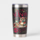 A festive and cheerful Christmas holiday design showcases an owl in a cozy scarf perched on a big stack of books. Nearby are vibrant poinsettias and a steaming cup of cocoa, surrounded by hearts and stars. The colorful text reads, "'Tis the season to be reading." This charming design is available on various products, making it a perfect gift for book lovers.