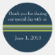 Ein Band mit grünen und weißen Streifen Pop auf diesem marineblauen Aufkleber. Das ist eine tolle Idee für Gastgeschenke.