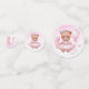 Konfetti für Babydusche mit einer bezaubernden Aquarellbilderin eines Teddybären in einem niedlich rosa Kleid.