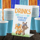 Blauer Waldfuchs und Rehgetränke Tischschild. In Blau, Orange, Braun. Waldtiere (Fox und Hirsch). Wild One Collection Clipart by Pixel Paper Prints
