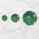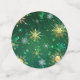 Grüner Weihnachtsgebirge mit Gold und grünen Schmuckstücken. Goldene Schneeflocken. Weihnachten.