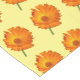 Orangefarbene Kalendula-Blüten mit kurzem grünen Stamm werden über den Läufer hinweg repliziert. Taubentropfen zeigen deutlich auf dem nahen Foto der Blätter.
