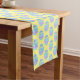 Dieser Tischläufer wird in einem festlichen Ostereier-Druck-Design auf einem gelben Hintergrund dargestellt. Wählen Sie aus drei Größen.