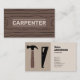 Eine Visitenkarte mit dem Text Carpenter auf einem Holzboden. Die Rückseite ist vollständig anpassbar und auf dem links eine Darstellung eines Hammers und einer Säge in beigen Tönen. Perfekt für die Holzbearbeitung beruflich wie Schreiner, Schrank, Holzbau, etc.
