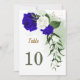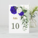 schöne königsblaue und weiße Blume mit einigen grünen Blätter und goldenen Glitzer-Tischnummer