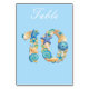 Die Tischnummer-Karte wird mit einer blauen Hintergrundfarbe mit einer niedlichen Muscheln am Strand angezeigt. Doppelseitig. Passen Sie diese Karte an oder kaufen Sie, wie es ist.
