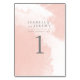 Tischnummer der Hochzeitsfeier in Aquarelltönen. Blush Korallen bemalten Hochzeitssuite. Teil einer Sammlung.
