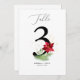 Die Tischnummern der Themenparties im Grünen bieten handbemalte Botanicals in Aquarellen und eine hübsche rote Poinsettia. Das moderne schlichte Design ist Set auf einem knalligen, weißen Hintergrund und mit passenden Goldklecksen betont. #Christmas #Holidays #HolidayParty