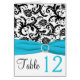 Diese schwarz-weiße Damast-Tischnummer hat ein Aqua-Blau PRINTED-Band und eine PRINTED Diamond-Perlenfibel, die perfekt für eine Hochzeit im Aqua- und Schwarztheater geeignet ist. **Sie MÜSSEN die Nummer 11 auf jede der Tischnummern, die Sie benötigen, ändern, in Ihren Warenkorb legen und dann zurückgeben und den Vorgang wiederholen, bis Sie alle einzeln nummerierten Karten haben, die Sie in Ihrem Warenkorb benötigen. Wenn Sie die Schriftart oder die Größe des Schriftartes ändern, kann es auch vorkommen, dass ein Teil des Designs und/oder Textes abgeschnitten wird. Alles wird gedruckt, wie Sie es auf Ihrem Monitor sehen. Ich werde keine Änderungen sehen, die Sie vornehmen, und Zazzle wird nichts korrigieren (Tippfehler, falsche Ausrichtung usw.). Der Text ist alle anpassbar. Sie können für die Tischnummer eine der beiden Größen auswählen. Wenn Sie Hilfe zu diesem Produkt benötigen, schicken Sie mir bitte eine E-Mail, bevor Sie Ihre Bestellung aufgeben. Wenn Sie weitere passende Artikel benötigen, senden Sie Ihre Anfrage bitte an niteowlstudio@gmail.com