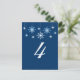 Blaue Schneeflocken schaffen ein Winterwunderland auf diesen passenden Tischnummern aus unserer wunderschönen Winterhochzeitssuite, die alles beinhaltet, was Sie für einen erlebnisreichen Tag benötigen.