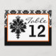 Tischnummer Card Schwarzer Orange Damask Lace Prin