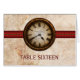 Diese antike Clock Wedding Tischnummer Card verfügt über ein Vintages Uhrwerk, das sich auf einer Metallkugelkette zentriert und einen schlichten, dunkelrot gestreiften Rahmen hat. Der bedrückte Look des grungy Papier Textur Hintergrund vervollständigt das antiquierte Gefühl dieser einzigartigen Tischkarte. Diese Hochzeitskarte ist ideal für eine Vintage oder steampunk inspirierte Hochzeit. Einfach zu anpassen, fügen Sie einfach Ihre Hochzeitsdetails in den Textfeldern zur Verfügung gestellt. Klicken Sie auf "Anpassen", um zusätzliche Optionen zu finden, um dieses Design zu personalisieren.
