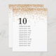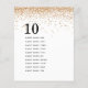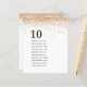Gold Glitzer Guest Names Tischnummer. 4,5 x 5,6" Halbschall, ähnlich dick wie eine Postkarte, mit 1 pro Blatt. Einfaches zeitgenössisches Design mit einer größeren Tischnummer in stilvollen Kleinbuchstaben und Ihren Gästebamen für den Tisch unter und viel Weiß mit einem Rand von goldenen Imitaten Glitzer an der Spitze. Personalisieren Sie den Text einfach auf Ihre eigenen Daten. Das gleiche Design ist auf der Rückseite