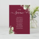 Diese eleganten bordeauxroten botanischen Blätter mit Hochzeitsfeiern können mit dem Sitzplan Set Ihrer Gäste in schicken Typografie personalisiert werden. Die Karten werden auf der Vorder- und Rückseite gedruckt (doppelseitig). Entwickelt von Thisisnotme©