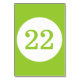 Weißer Kreis mit apfelgrüner Tischnummer. Ändern Sie die Hintergrundfarbe oder fügen Sie ein Bild hinter dem Kreis hinzu. Sie können auch den Stil des Schriftartes ändern.