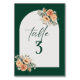 Tischnummer, elegante, dunkelgrüne Blumen Tischnummer