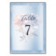 Tischnummer für blaurosa Blume