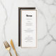 Reiner und eleganter Text ist auf diesem vertikal und schwach formatierten Veranstaltungsmenü leicht personalisiert. Schwarz-Weiß ist raffiniert gepaart mit einem Rahmen von Imitaten Gold Glitzer. Für eine zusätzliche persönliche Touch, fügen Sie Ihr Lieblings-Verlobung-Foto oder benutzerdefinierten Text auf der Rückseite mit der Option "Anpassen Sie weiter".