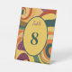 Das ist ein groovy gemustertes Tischnummer-Zeichen, das in einem behalt mit einer Groovy Hochzeit ist, wenn Sie für diesen Retro-Look gehen.