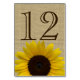 Hübsche gelbe Sonnenblume und rustikales Landhausbild der Einbeulung Tischnummer Sitzkarte zu ergänzen. Falten Sie die Hälfte für kostenlose stehende Karte.