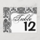 Tischnummer-Karte Schwarz-weiß Damask Lace Print P Postkarte