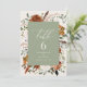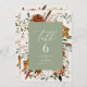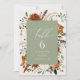 Botanischer Blumenstrauß, Terrakotta, schwarz, natürlich und sage grün rustikal, elegante Tischnummer Hochzeitstag Dekoration. Auf Trend Skript-Text, Teil einer passenden Hochzeitssuite.