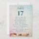 Tischkarten, die die Gäste an jedem Tisch auflisten. Eine Muschelgrenze unten, über einem blauen - rosa verblassten grafischen Hintergrund, mit blauer Zahl und Text. Listet Namen mit der entsprechenden Tischnummer auf, die am Empfang hängen sollen. Alle Texte werden auf beiden Seiten gedruckt. Setzen Sie sich in einen Stand auf den Empfang-Tischen. Die Gäste können die Karten durchblättern und dann ihren Tisch finden. Das Design ist perfekt für jeden Tag, Hochzeit oder Event. Das Design kann angepasst und heruntergeladen werden, um selbst auszudrucken, oder wählen Sie einen Papiertyp und die Bestellung zum Drucken.