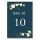 Navy Blumengarten Tischnummer Karte. Hintergrundfarbe und Text sind auf Ihre persönlichen Hochzeitswünsche zugeschnitten.