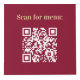 Für Restaurant, Café, Bar Tische, Personalisieren und fügen Sie Ihr Firmenlogo, Tischnummern und QR-Code für Ihre Speisekarte. Burgunder Hintergrund, gelber Text.