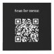 Für Restaurant, Café, Bar Tische, Personalisieren und fügen Sie Ihr Firmenlogo, Tischnummern und QR-Code für Ihre Speisekarte. Schwarzer Hintergrund, weißer Text. Sie können Ihre Markenfarbe im Designwerkzeug hinzufügen.