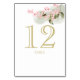 Rosa Frühlingsblüten Tischnummer Karte mit atemberaubenden Wasserfarbenblumenblüten und Salbei. Gold-Text kann in jede Farbe geändert werden. Bearbeiten und ändern Sie jede Tischnummer und fügen Sie für jede benötigte Tischnummer einzeln zum Warenkorb hinzu.