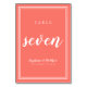 Dieses Design wurde für kleinere intime Hochzeitsfeiern geschaffen. Das einfache, minimalistische und elegante Design der Wedding Tischnummer Seven besticht durch ein zeitgenössisches Design mit einem doppelten Rahmen in knalligem Weiß auf Korallenhintergrund. Das schicke Design bietet zeitlose und moderne Eleganz. Persönliche Gestaltung der Hochzeitstische mit Ihren Hochzeitsdetails in knackiger weißer Schrift und Schrift. Die Rückseite der Karte ist ein Duplikat der Vorderseite. Bestellen Sie einen für jeden Tisch mit den einzelnen Tischnummern. Die Tische 1 bis 10 sind individuell gestaltet und sind in meinem Geschäft "InvitationSuites" auf Zazzle erhältlich. Während Sie speziell für einen kleineren Veranstaltungsort erstellt wurden, senden Sie uns bitte eine E-Mail an InvitationSuites@gmail.com .