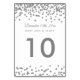 Elegantes Hochzeitsdesign "Tischnummer" mit Silver Imitats Glitzer Confetti Weiß und individueller Tischnummer Text.