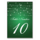 Elegantes Hochzeitsdesign "Tischnummer" mit romantischen Sparkling Lines Emerald Green Motiv, individuellen Namen und Date Text. Beeindrucken Sie Ihre Familie und Freunde mit diesem stilvollen und modernen Design. Vollständig anpassbar! Einfach zu bedienen und leicht zu personalisieren.