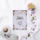 Mit der Vintagen Lavender Peony Real Foil Tischnummer Card führen Sie Ihre Gäste zu ihren Sitzplätzen und präsentieren elegante Aquarellfarben-Rose und Torfbäume auf einem weichen Lavendelhintergrund. Die luxuriöse, reale Folientextur fügt eine Touch Vintager Romantik hinzu. Diese Tischnummer ist perfekt für eine Hochzeit im Frühjahr oder im Sommer geeignet und ist Teil einer kompletten Hochzeitssammlung mit einer echten Folie, die Einladungen, Menüs, Programme und vieles mehr umfasst und so ein schön abgestimmtes Aussehen garantiert.