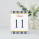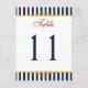 Diese Tischnummer mit blauen und weißen Streifen ist mit goldgelben Schriftrollen und rotem Text versehen, der der unten gezeigten Hochzeitseinladung entspricht. ****Sie MÜSSEN die Nummer 11 zu jeder gewünschten Nummer ändern, in Ihren Warenkorb legen und dann zurückkommen und den Vorgang mit jeder gewünschten Nummer wiederholen. Mengenrabatte können gewährt werden, wenn Sie alle Artikel in Ihren Warenkorb legen. Wenn Sie Fragen haben, kontaktieren Sie mich unter niteowlstudio@gmail.com.