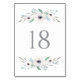 Aquarellfarbene Garland Tischnummer Card. Weibliche und elegante Tischnummern mit Aquarellbildern von weißen Anemonen mit Blattwerk. Passen Sie jede Zahl einzeln an. Das ist Teil einer Hochzeitssuite. Matching-Elemente sind verfügbar. Ideal für Hochzeiten, Babyduschen, Brautparty und andere Veranstaltungen.