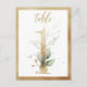 Schöne Tischnummer-Karte mit botanischem Motiv - eine Aquarellbild von Grünpflanzen und goldenen Effektzahlen. Tabelle 1. Bitte Karo alle verfügbaren Nummern