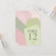 Abstrakte Farbblockade in einer fröhlichen Farbpalette aus Rose Rosa und Frühlingsholz bietet einen beeindruckenden Hintergrund für die Stücke in dieser zeitgenössischen Hochzeitssuite. Die hier gezeigte Hochzeitskarte ist eine bemerkenswerte Ergänzung zur Dekoration des Hochzeitstisches. Fügen Sie Ihre Namen, das Hochzeitsdatum und die Tischnummern mit der bereitgestellten Vorlage hinzu. Suchen Sie ID740 um weitere Farboptionen und zusätzliche Produkte mit diesem Design zu sehen.