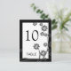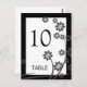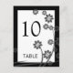 Tischnummern für schwarze, orange Muster. Hochzeitsempfang-Tischnummern in Vorlagenform sind so groß wie eine Standardpostkarte.