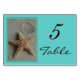 Diese große Tischnummer zum Thema Hochzeit am Strand verfügt über ein Foto eines Seesterns im Sand als Brennpunkt mit Ihrer Tischnummer auf der rechten Seite des Fotos angepasst. Das ist eine großartige Tischnummer für eine Hochzeit zum Thema Strand. Copyright henishouseuse paper