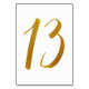 Tischnummer 13: Diese lässige Pinsel Skript-Tischnummer-Karte ist Set in einem Imitat Goldfolie. WICHTIG: Die abgebildete Folie ist ein Druckeffekt. Es ist keine echte Folie. Wenn Sie diesen Effekt nicht gewollt haben, können Sie ihn wie folgt löschen: 1) Klicken Sie auf "Weiter anpassen. 2) Finden Sie das Bild, das z-gold Folie sagt, und löschen Sie es. Wählen Sie dann Ihre eigene Farbe aus den Hintergrundfarben aus.