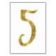 Tischnummern - Nummer 5 - mit Goldfolieneffekt (Imitate, als Bild gedruckt) auf weißem Hintergrund