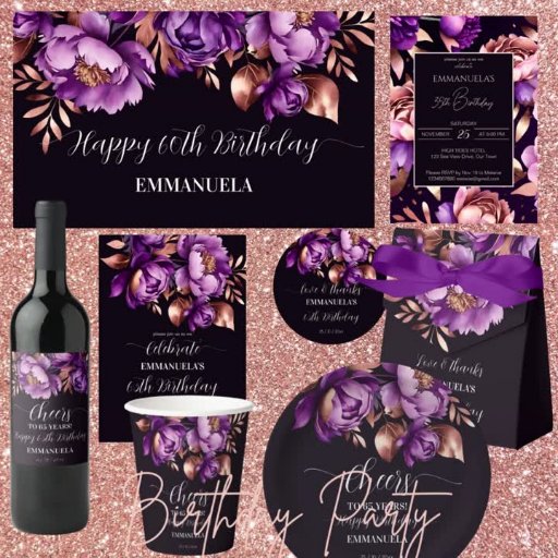 Elegant purple rose gold adults birthday partyDesignt von Ieva Jenciute