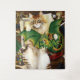 Orangefarbene Münzkatze mit einem kleinen grünen Drachen, der auf einem Tisch zusammenrollt. Um sie herum sind Würfel, Schachfiguren, Runen, Zauberstab, Schwert und vieles mehr.