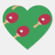 Tischtennisschläger und Ball auf Grün Herz-Aufkleber